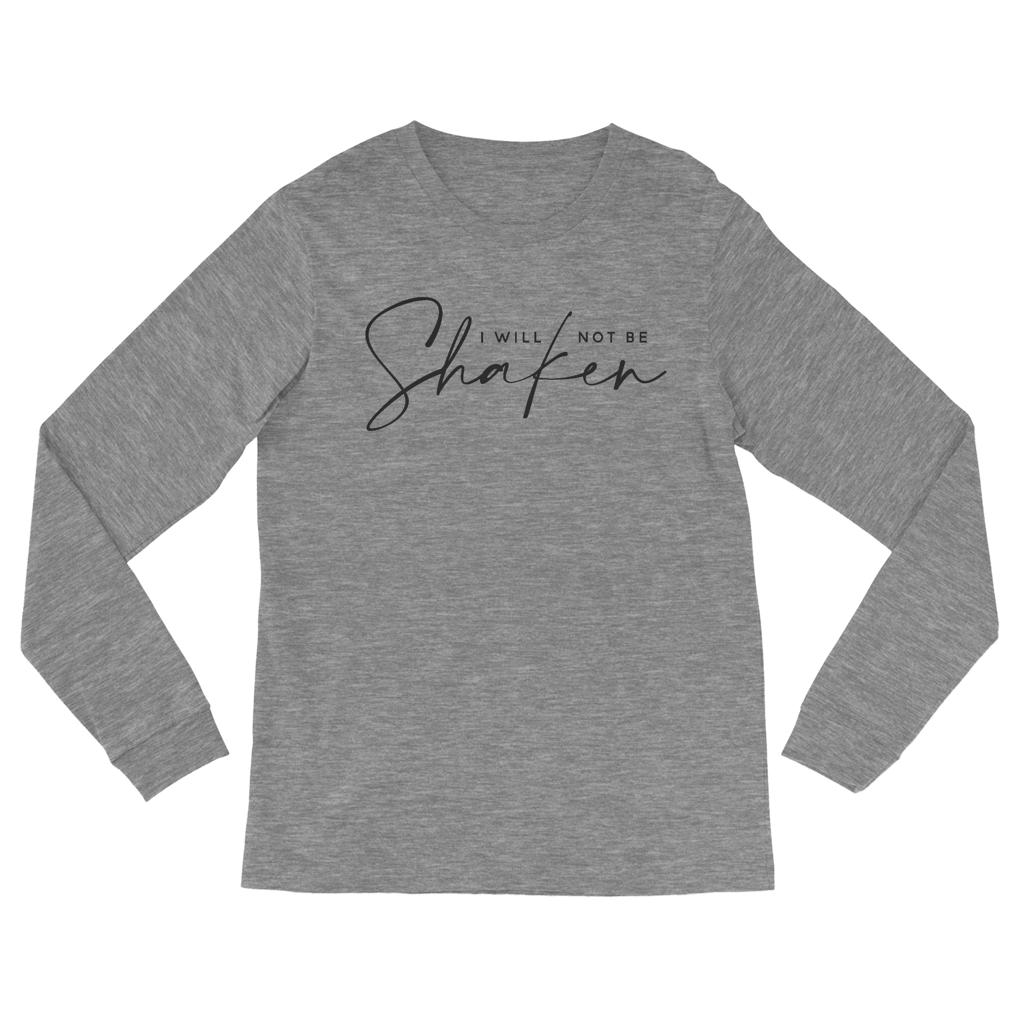Stand firm in your beliefs with our "I Will Not Be Shaken" super soft long sleeve t-shirt, delivering a powerful message of resilience. The bold statement serves as a daily reminder to stay grounded, no matter the challenges you face. Perfect for anyone who values strength and positivity, this love sleeve t-shirt is more than just apparel—it's a declaration of unwavering faith and determination.